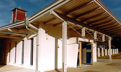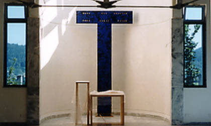 Beschreibung: Glasfenster- und Altargestaltung: Valentin Oman